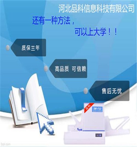 品科光標(biāo)閱讀機(jī):一、性能超穩(wěn)定: 1. 其增加獨(dú)特的防靜電設(shè)計(jì),解決原來不適應(yīng)干燥氣候,易起靜電,連續(xù)工作時(shí)間短的問題。使其即使在干燥的環(huán)境中,也能很好的防止靜電產(chǎn)生,從具備超強(qiáng)的持續(xù)工作能力,更加適應(yīng)冬季或氣候干燥地區(qū)大工作量的信息處理工作。 2. 不受潮濕環(huán)境影響,即使在雨季或潮濕的環(huán)境中也能正常工作。 3. 主板升級(jí),溫度適應(yīng)范圍更廣。耐熱、耐寒,適應(yīng)南方、北方、晝夜溫差大、四季變化明顯的所有地區(qū)。突破光標(biāo)閱讀機(jī)地域極限。 4. 三套軟件全面升級(jí),并且同時(shí)優(yōu)化兼容系統(tǒng),全面兼容五岳鑫、山大、泰興等機(jī)器驅(qū)動(dòng)。二、全能功能: 1. 大小不同的信息卡進(jìn)行混讀。 2. 能八級(jí)調(diào)速,任意選擇讀卡速度。 3. 能兼容五岳鑫、山大、泰興等機(jī)器驅(qū)動(dòng)。 4. 能連接各種臺(tái)式電腦和筆記本電腦,支持COM口和USB口雙口連接。 5. 能支持國(guó)內(nèi)外用戶使用,寬電壓范圍AC90V~264V,47HZ~63HZ. 6. 能讀同步框分布不均勻的卡。 7. 能更好的防止靜電,消除靜電影響。 8. 能在各種環(huán)境下正常工作,耐干、耐潮、耐寒、耐熱。 9. 能持續(xù)升級(jí)。支持系統(tǒng)升級(jí),可隨時(shí)升級(jí)為新型號(hào)機(jī)型。 10. 能讀鉛筆或碳素筆填寫的卡。