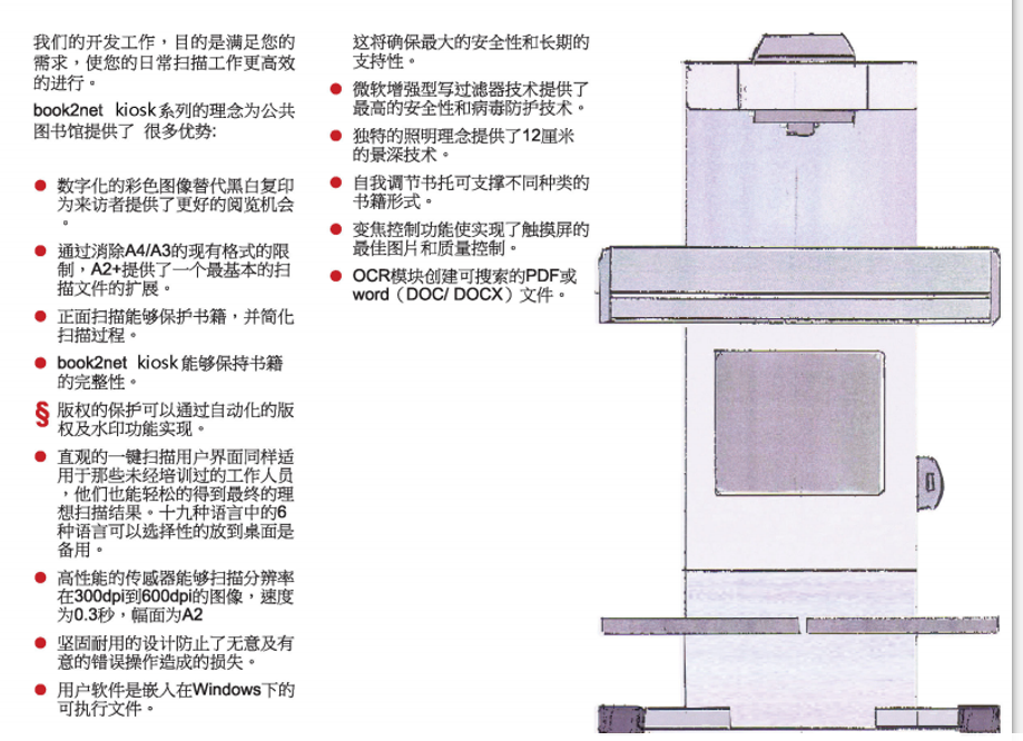 *3、為保證書刊案卷掃描的高速、耐用和使用便利的要求,要求矩陣式CCD點對點一次性彩色掃描方式。要求彩色掃描一次性完成,掃描過程鏡頭、光源不移動。并且要求具備實體證物彩色立體采集功能,要求實體證物采集景深高度≥15cm。操作過程中可任意更多種語言選擇